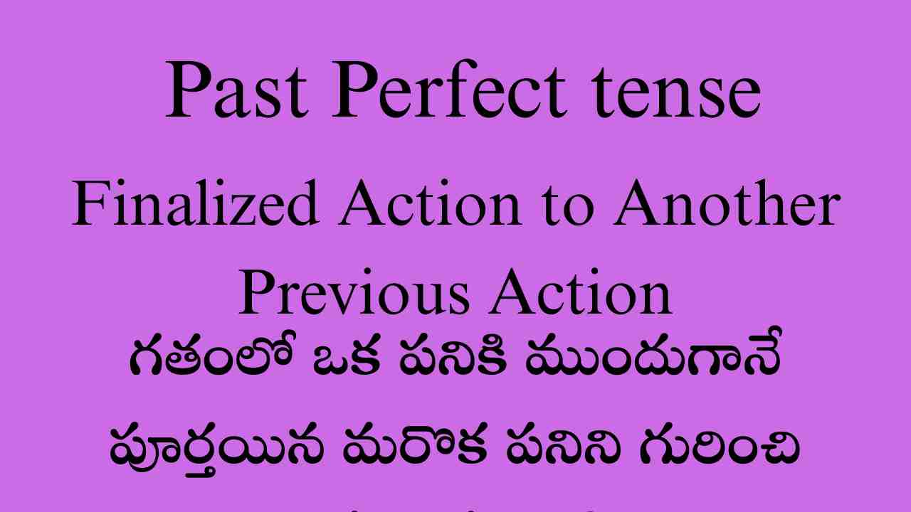 3. కానీ, గతంలో  రెండు పనులు జరిగిపోయి ఉంటాయి. వాటిలో ముందుగా జరిగిన పనిని Past Perfect  tense లోను తరువాత జరిగిన పనిని  Simple Past లో తెలియజేస్తారు.  ఇటువంటి సందర్భంలో మాత్రమే ఈ Past Perfect  tense ని ఉపయోగిస్తారు.