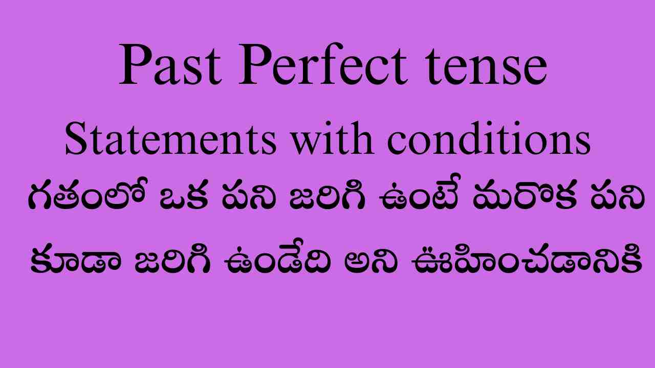 గతంలో జరగవలసిన రెండు పనులు జరగలేదు. ఒకవేళ మొదటి పని జరిగి ఉంటే రెండో పని కూడా జరిగి ఉండేది అని ఊహాజనితంగా చెప్పడానికి. ఈ Past perfect tense ని ఉపయోగిస్తారు. ఇటువంటి వాక్యాలను ‘if’ కండిషన్తో ‘would’ ను ఉపయోగించి తెలియజేస్తారు.