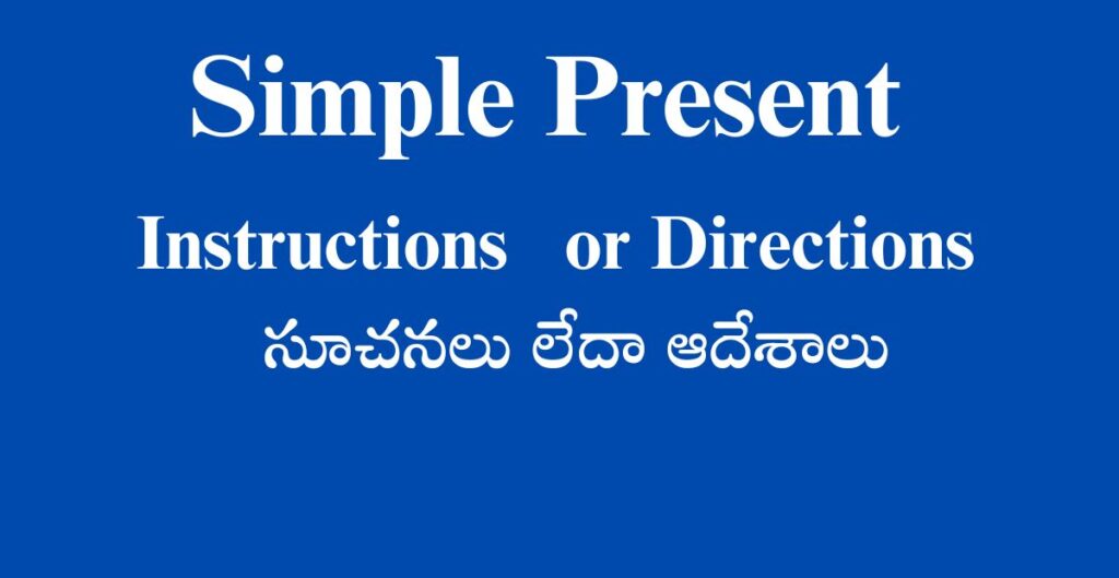 Posted by By Telugufish Spoken English November 15, 2025 4.Instructions or directions Giving instructions, directions, or commands. ఇతరులకు కొన్ని సూచనలు(Instructions), నిర్దేశికాలు (Directions), ఆజ్ఞలు (Command)…