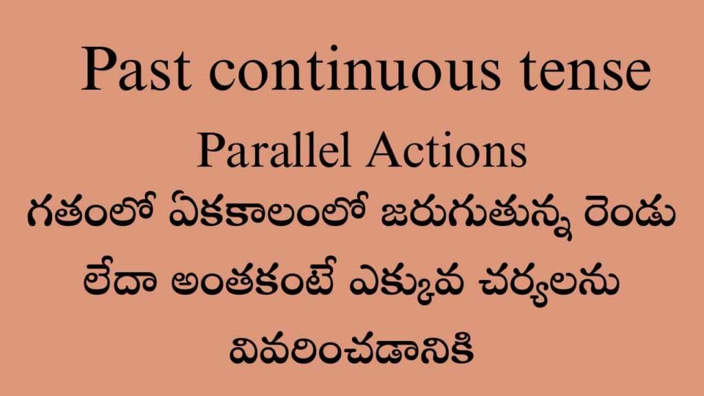 2 Parallel Actions: గతంలో ఏకకాలంలో జరుగుతున్న రెండు లేదా అంతకంటే ఎక్కువ చర్యలను వివరించడానికి.ఈ Past…
