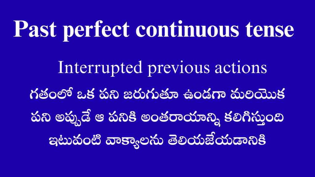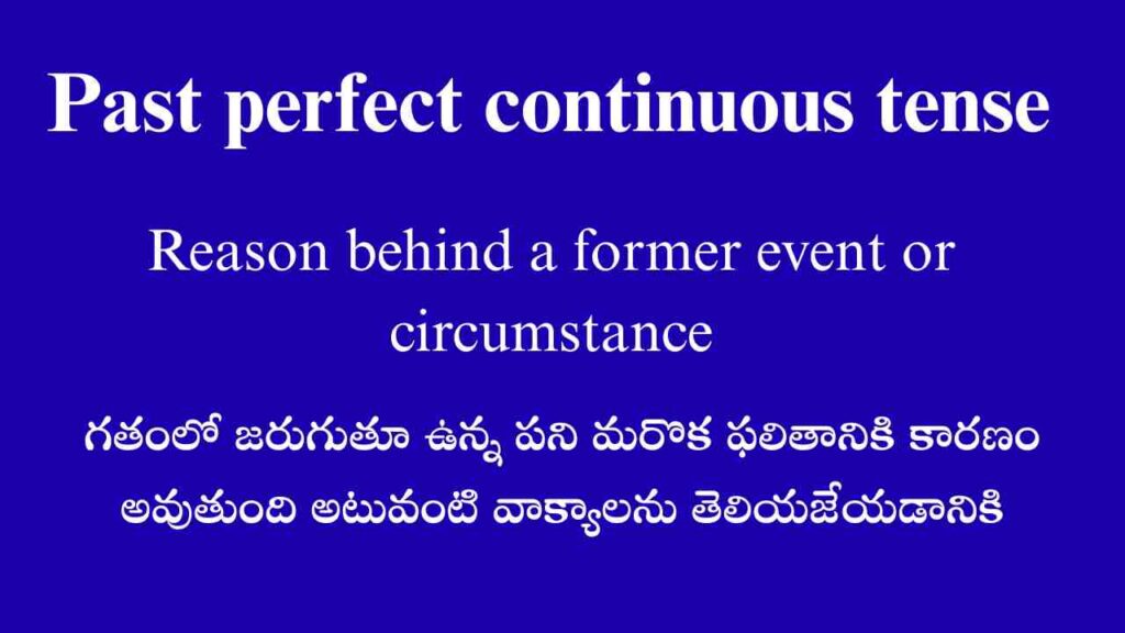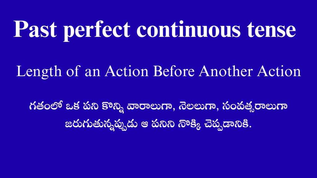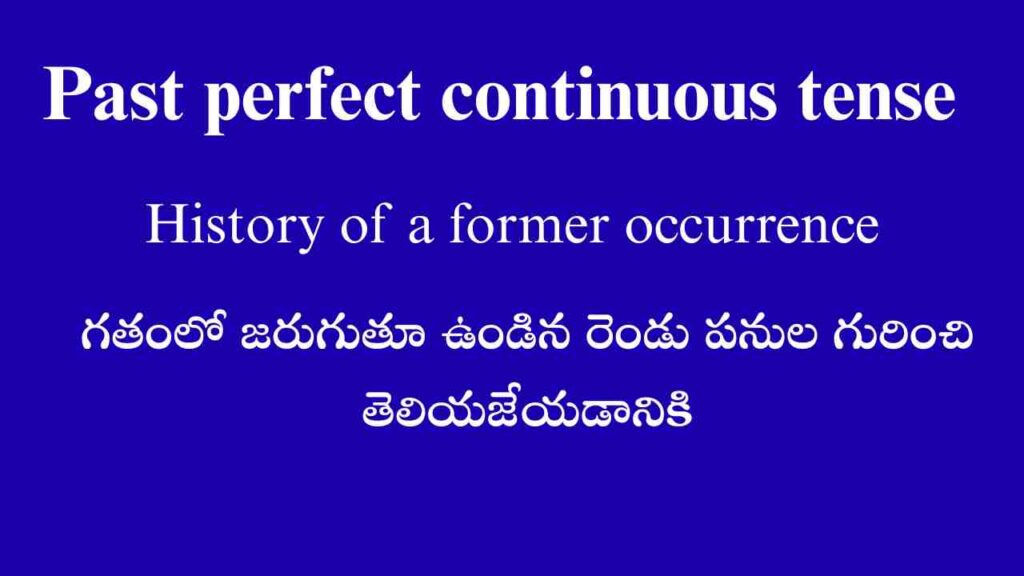 Posted by By Telugufish Spoken English November 15, 2025 Past perfect continuous tense గతంలో ఒక పని ప్రారంభించబడి కొంత సమయ వ్యవధిలో కొన్ని గంటలుగా…