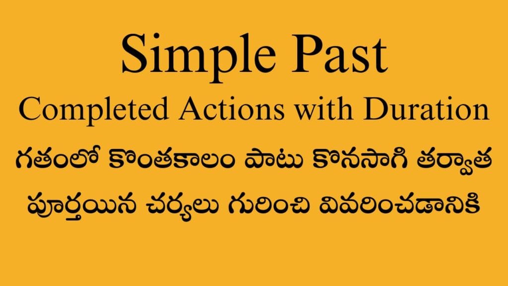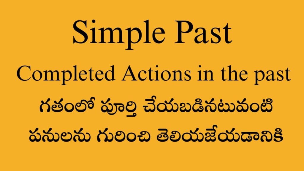 1.  Completed Actions in the Past:  గతంలో పూర్తి చేయబడినటువంటి పనులను గురించి తెలియజేయడానికి Simple past tense…