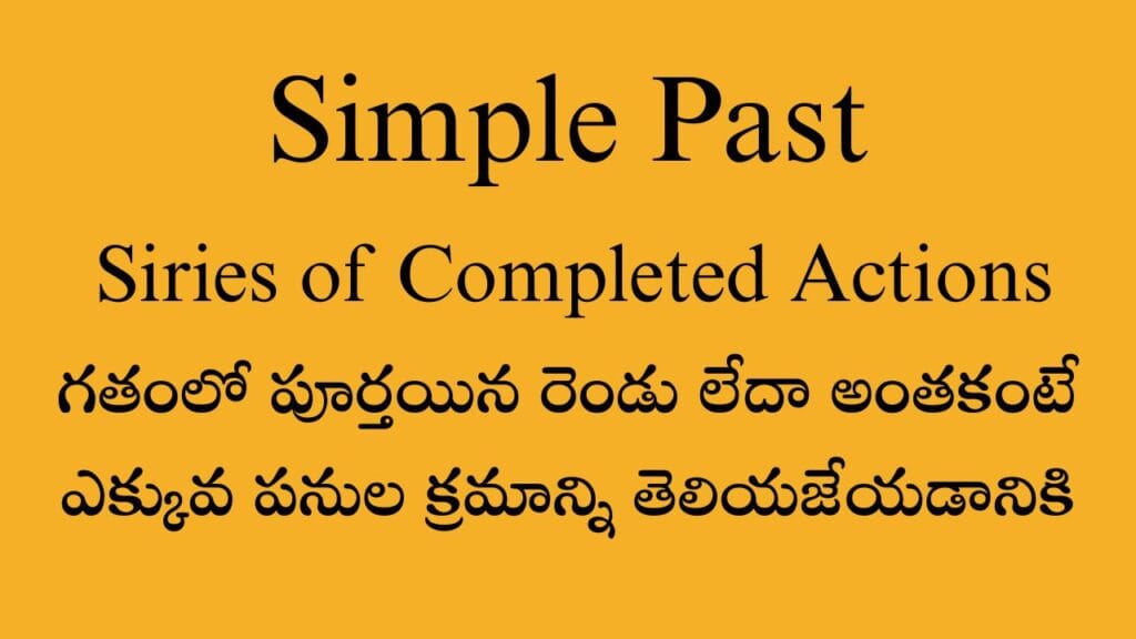 2  Series of Completed Actions:          జరిగిపోయిన కాలంలో ఏవైనా కొన్ని పనులు ఒక…