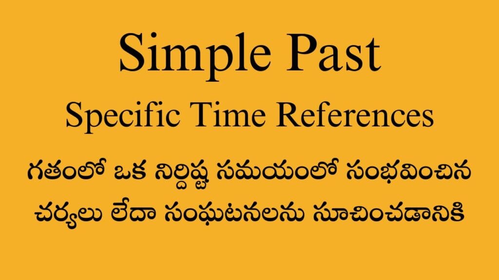 4  Specific Time References:             గతంలో ఒక నిర్దిష్ట సమయంలో సంభవించిన చర్యలు లేదా సంఘటనలను సూచించడానికి,…
